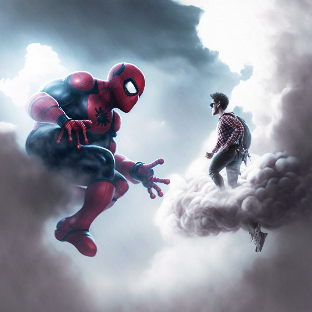 Spiderman fight with Antman on clouds realmn