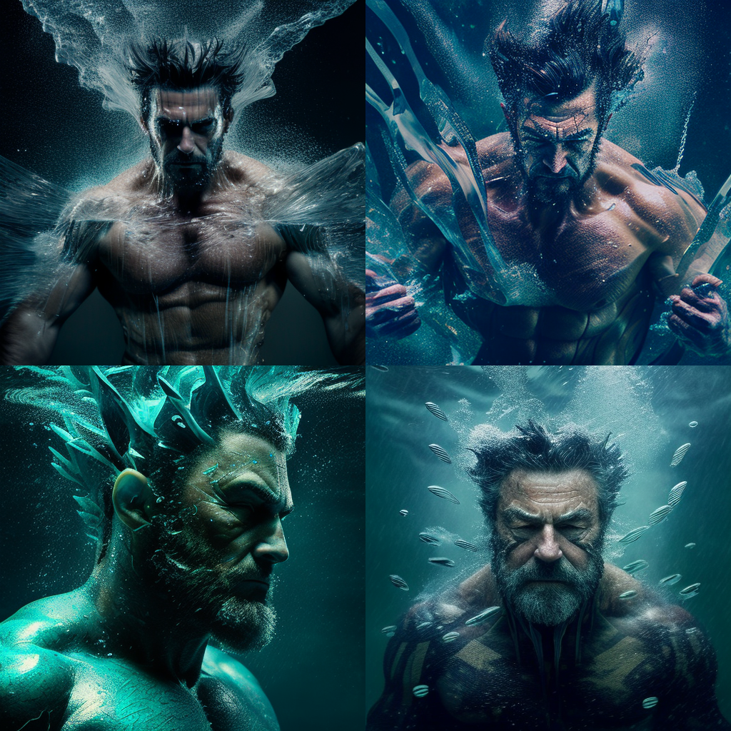 As Wolverine struggled to keep himself afloat, he realized that his healing factor wasn't working at all. He was getting older and weaker by the minute, and the cold water was starting to take its toll on his body. He was stuck, sinking deeper and deeper into the ocean, and there was nothing he could do to save himself.